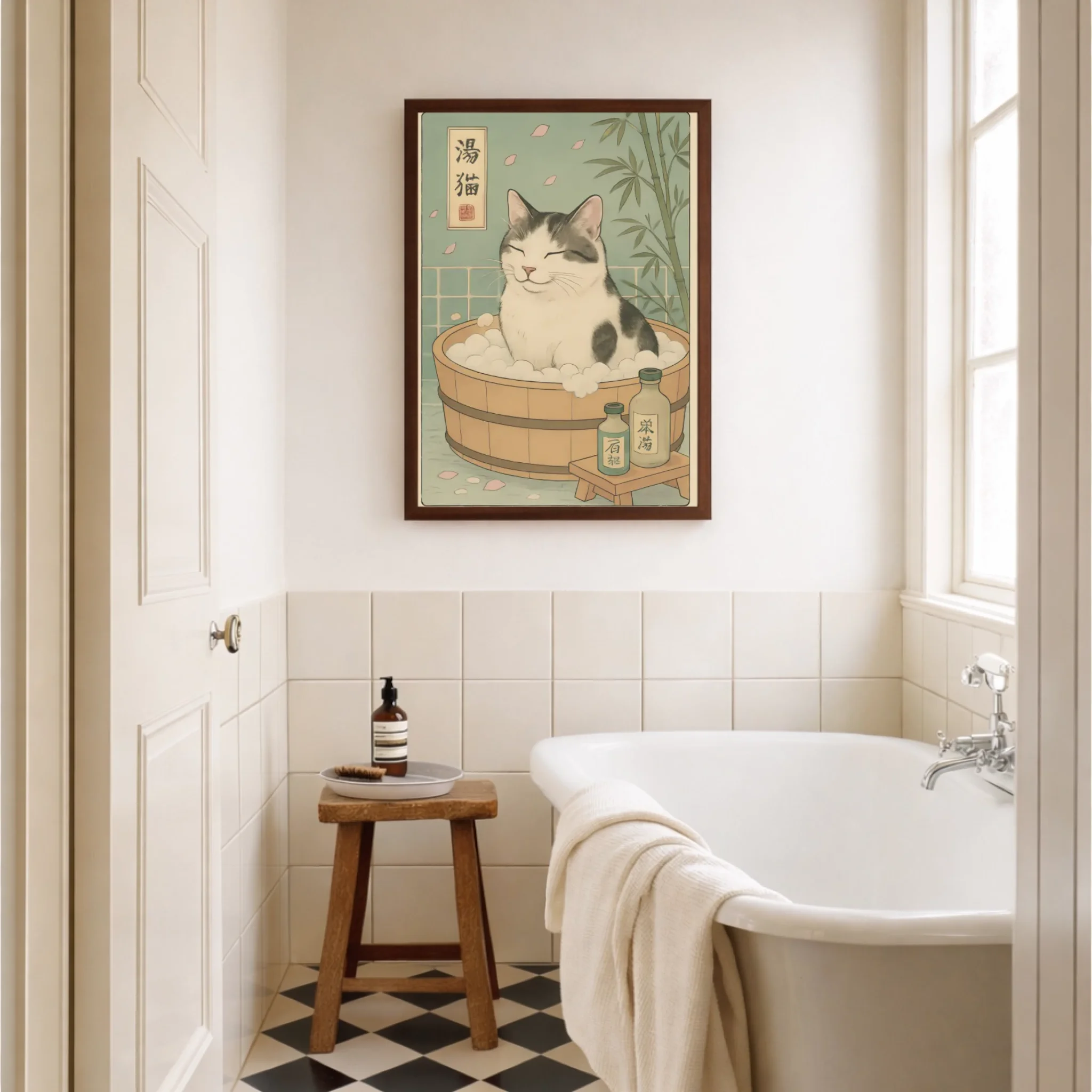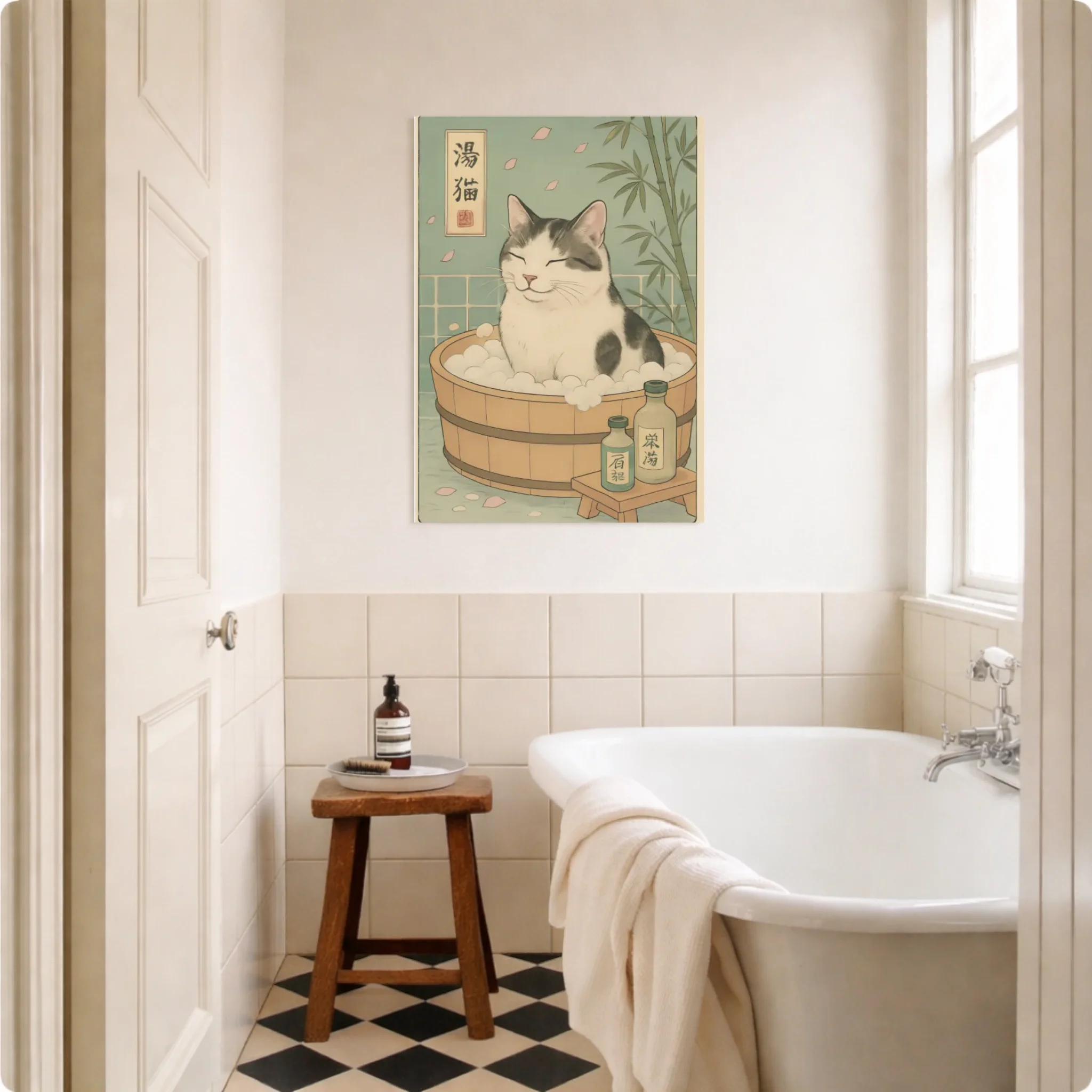 Personnalisez votre déco avec une touche zen et décalée – votre compagnon immortalisé dans un bain japonais plein de sérénité.
