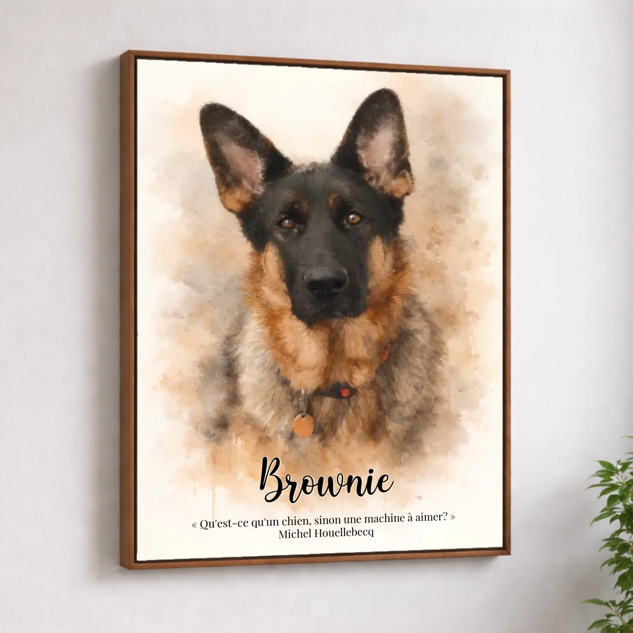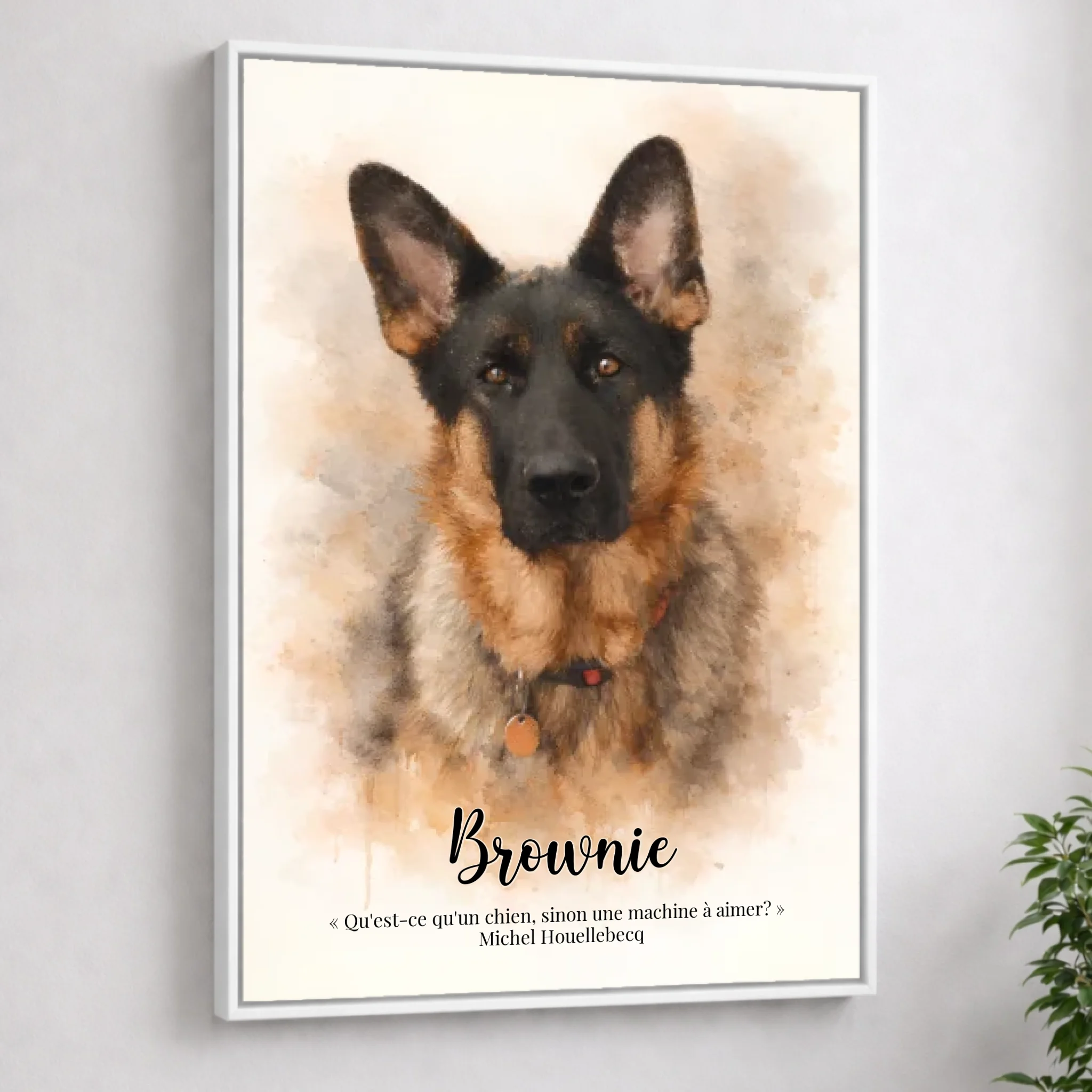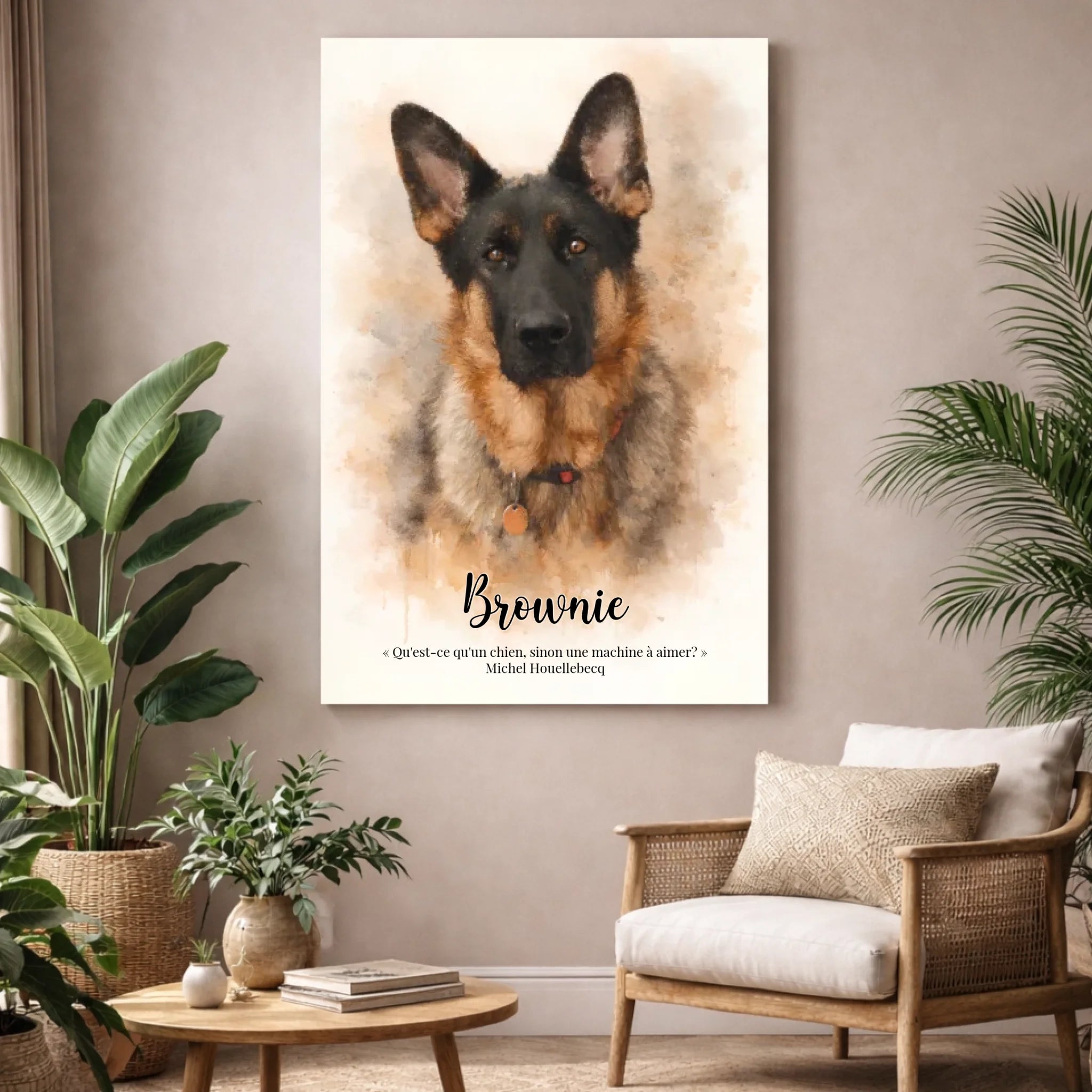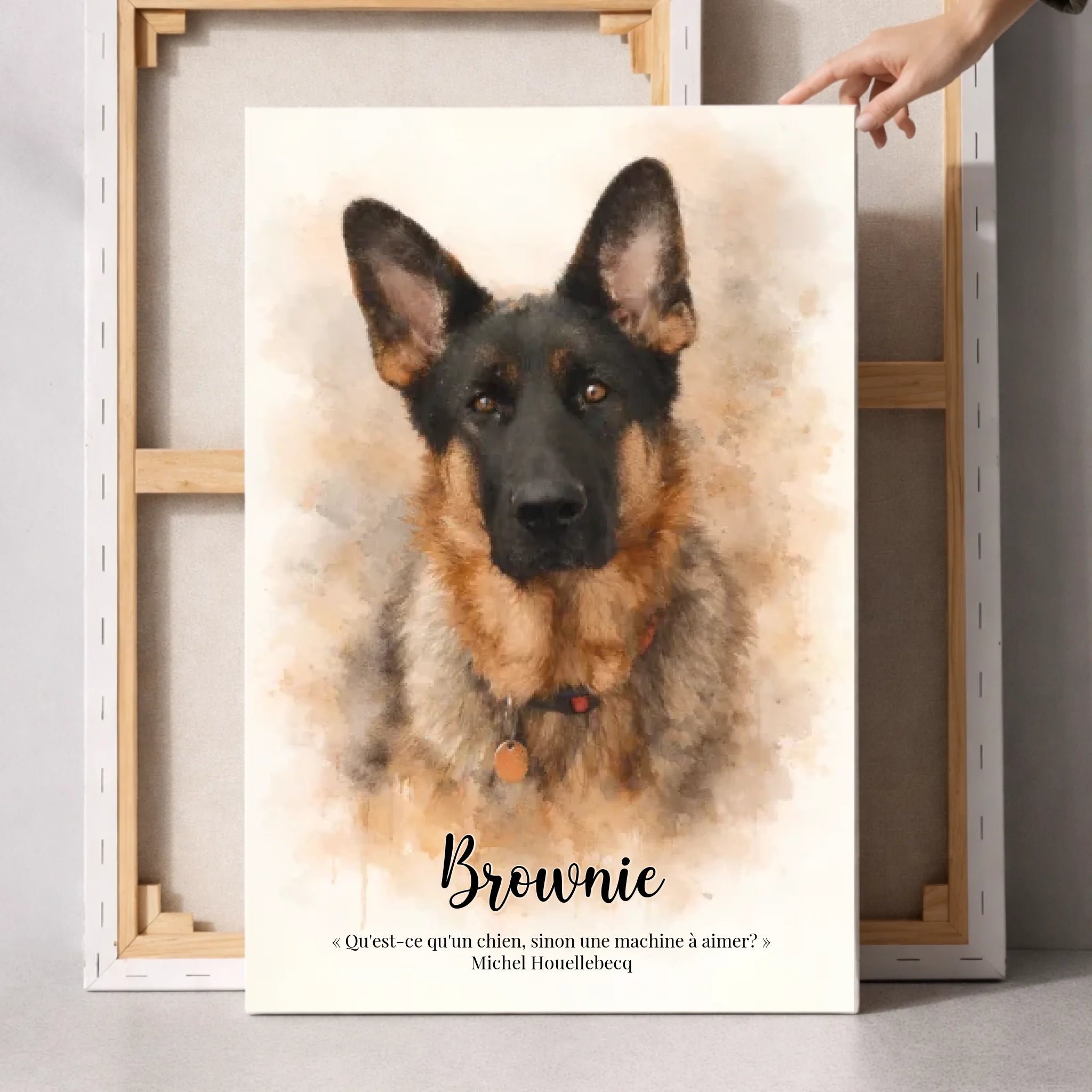 Transformez la photo de votre animal en une toile aquarelle élégante et personnalisée.