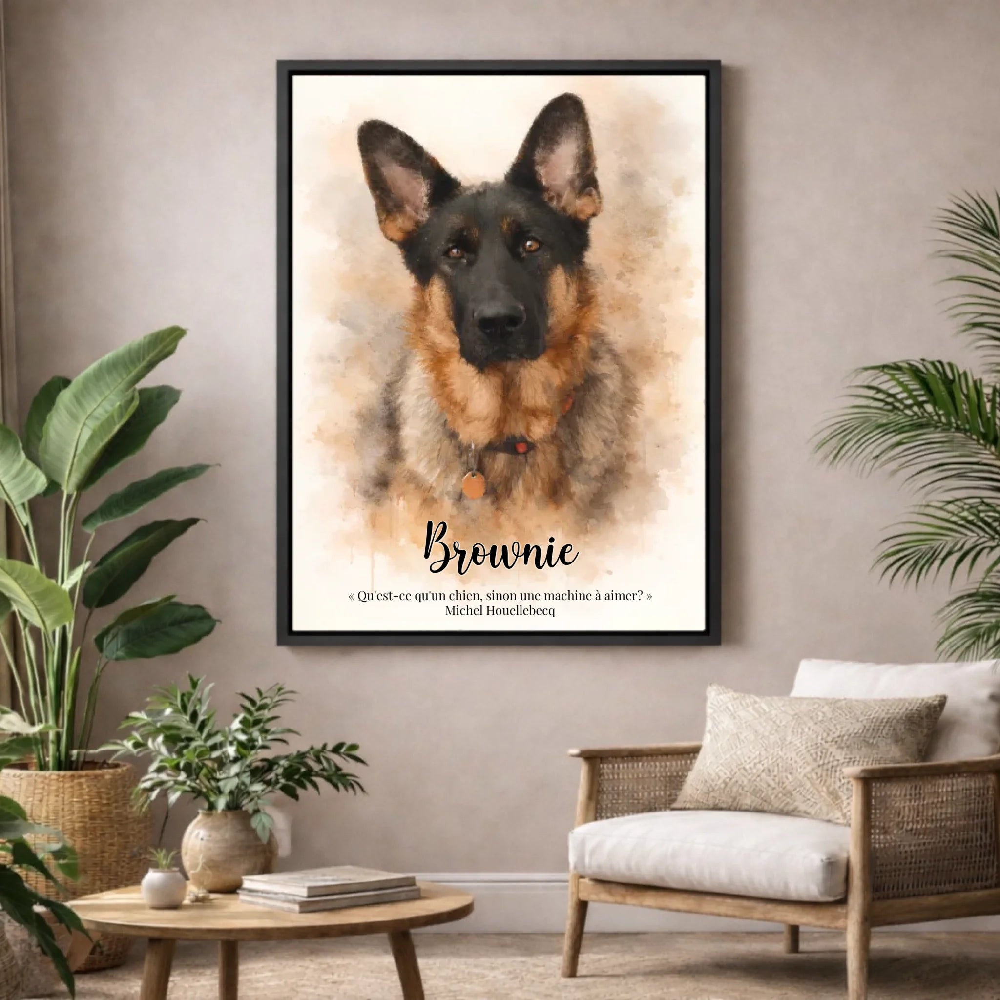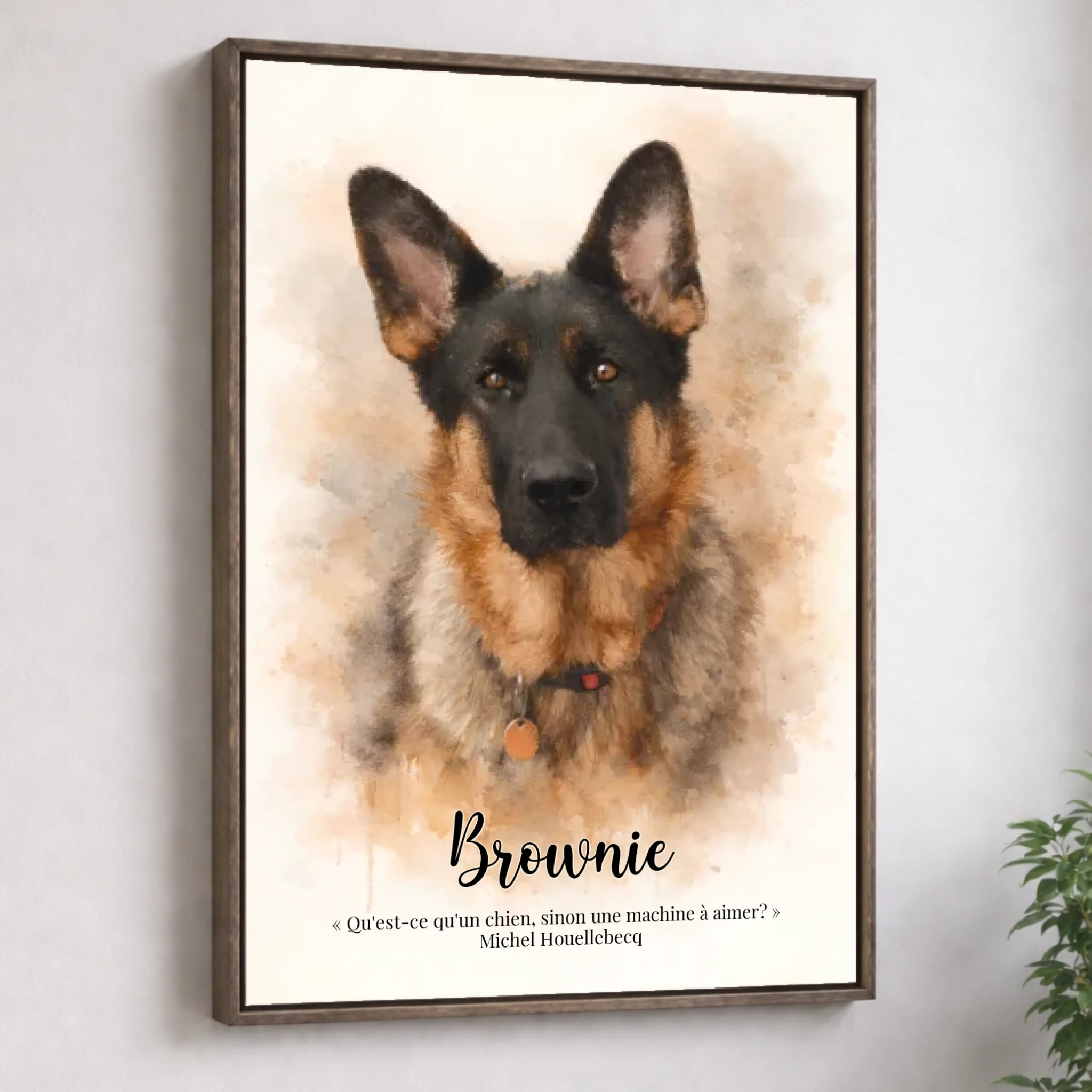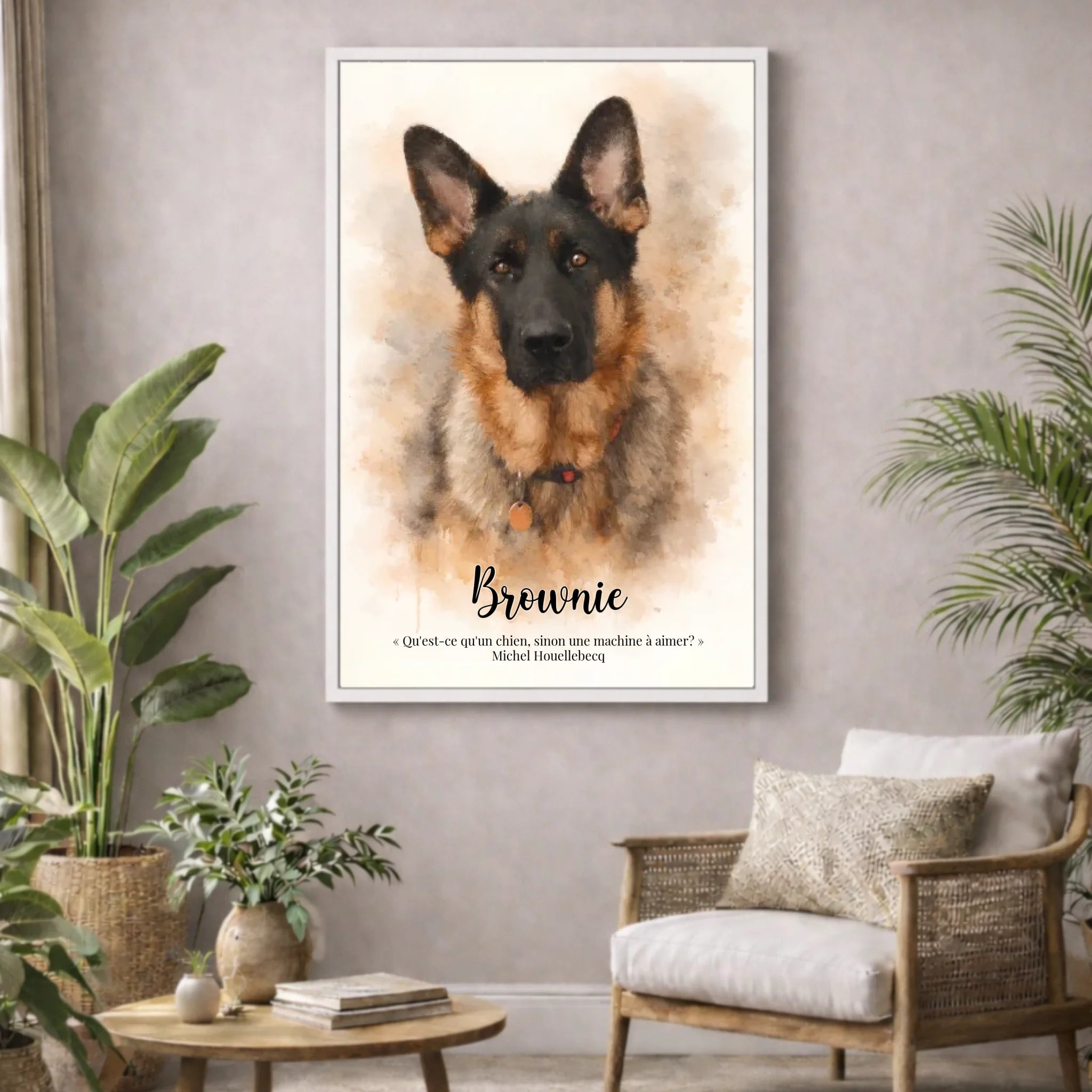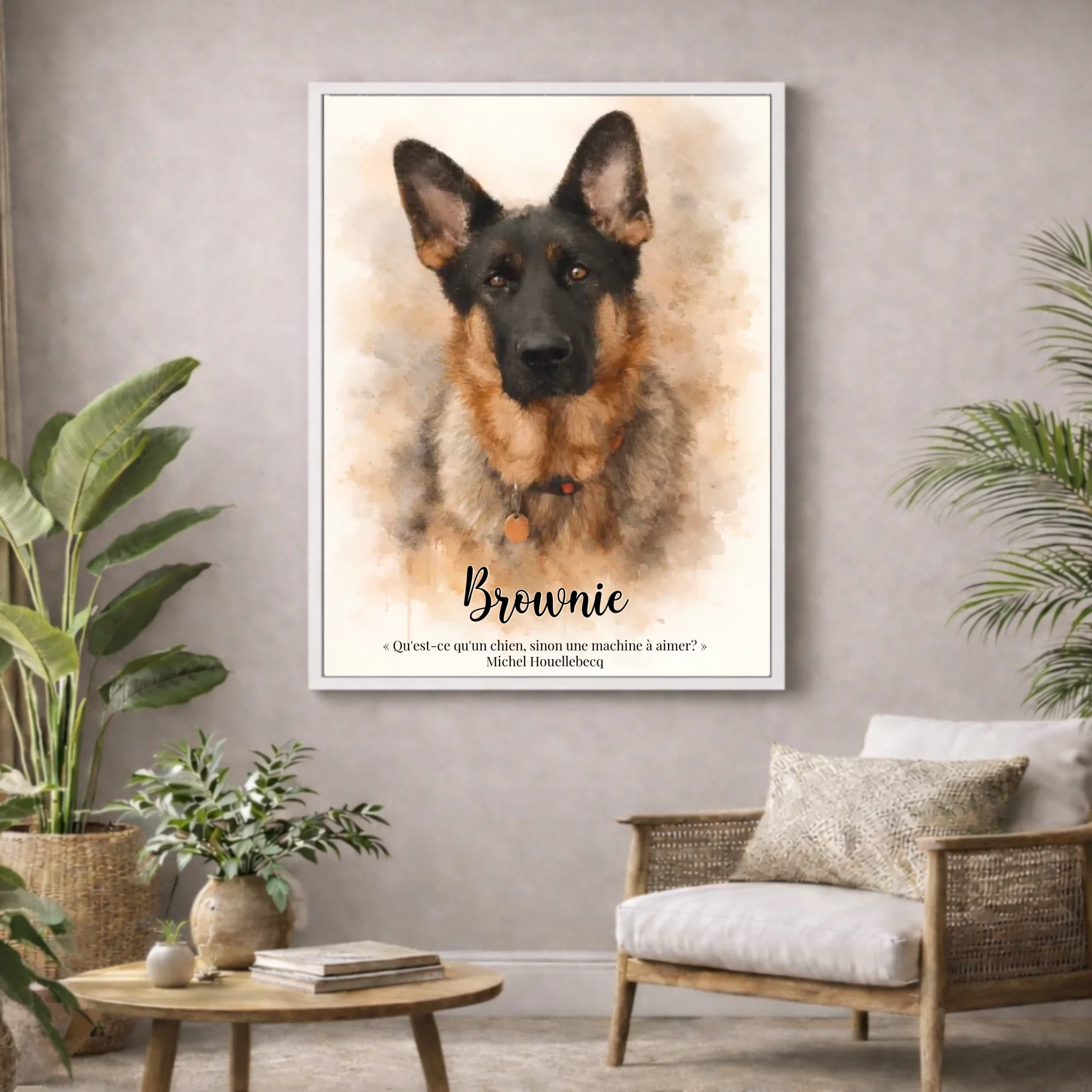 Transformez la photo de votre animal en une toile aquarelle élégante et personnalisée.